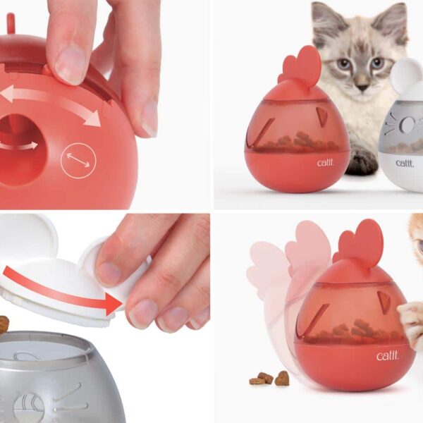 El dispensador de chuches Catit PIXI es un juguete para gatos que gira y se balancea como una peonza, sin