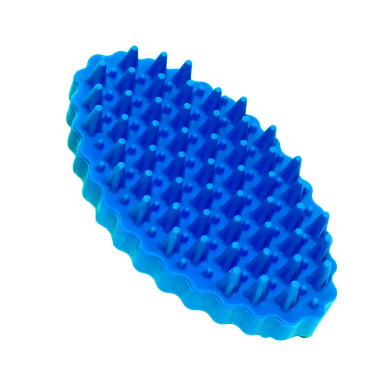 Cepillo de silicona, retira el pelo muerto con puntas redondeadas de forma ovalada en color azul.